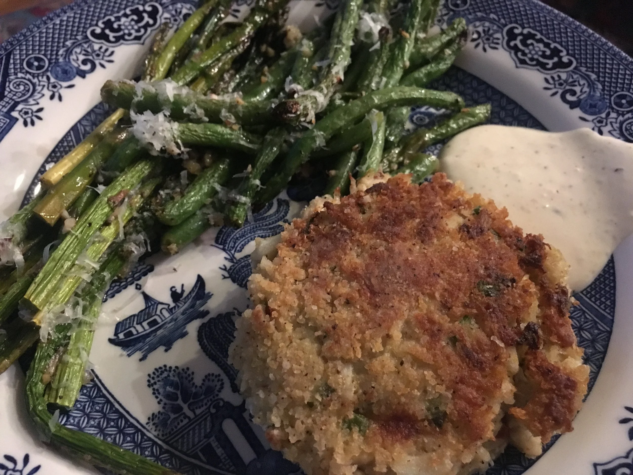 This seems to be a popular recipe. The cakes are simple and highlight the crab—there’s not much filling but the cakes still hold together well enough to cook. Makes 5-6 cakes.